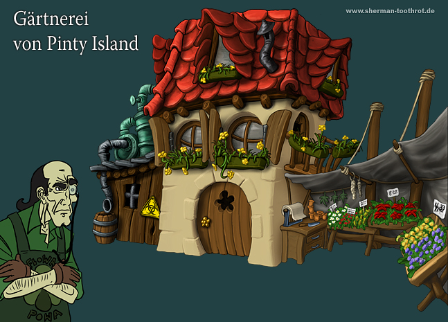 Wie man bereits über den Gärtner von Pinty Island in unserer Charakter-Rubrik in Erfahrung bringen durfte, arbeitet er unentwegt in den dichten Wäldern Pintys an neuen botanischen Sensationen - doch zu welchem gefährlichen Preis? Anzutreffen ist er für gewöhnlich hier, an seinem harmlos wirkenden, aber skurrilen Domizil im Herzen der Insel.
